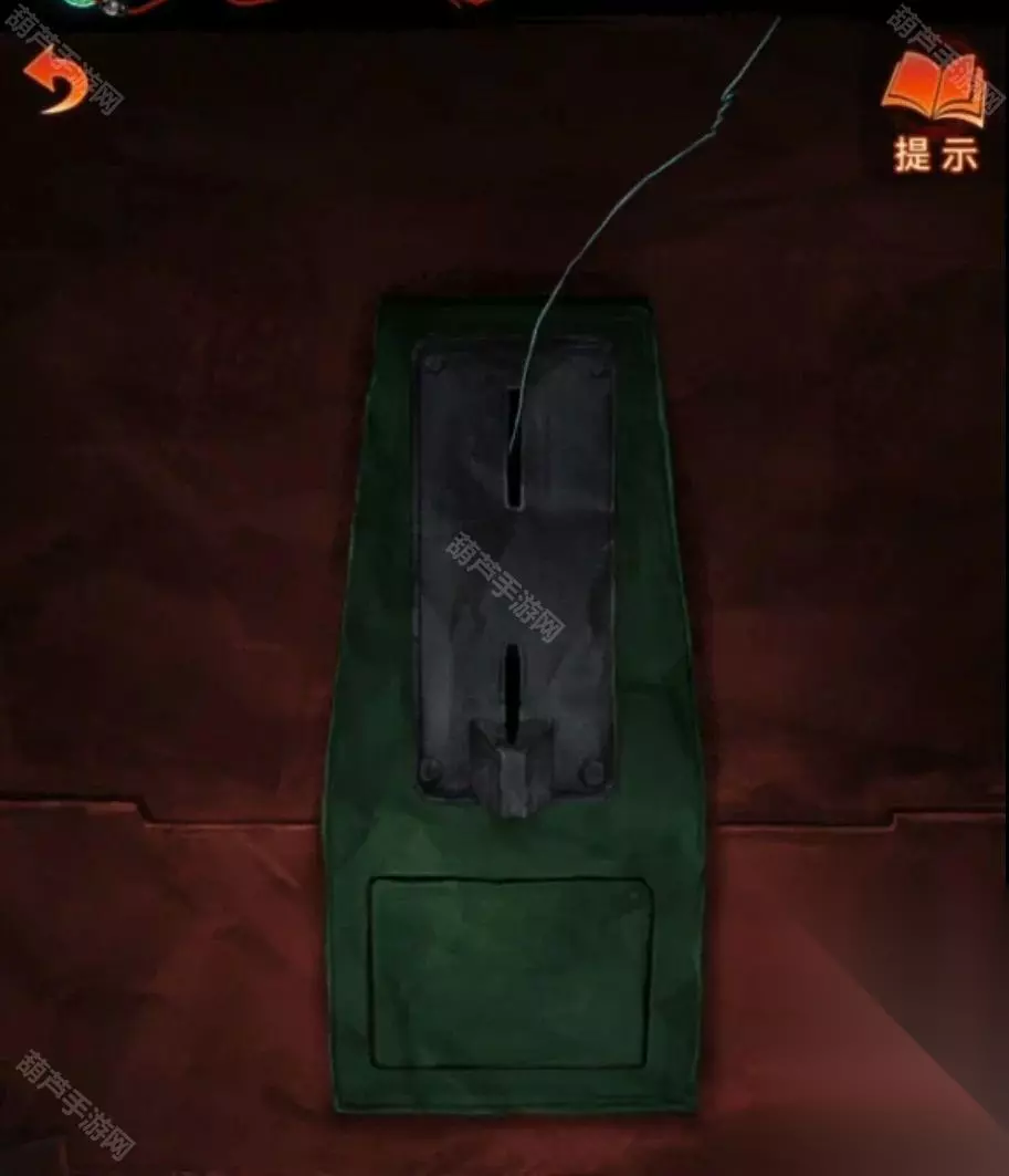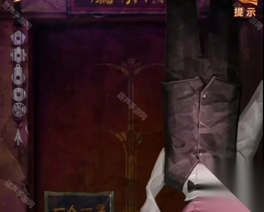 先回去确认一下手机上无常喜纸钱的样式,然后点击右边桌子上的黄纸,点击变更图案后选择需要裁剪的位置,点击裁剪后就能获得无常喜纸钱了,查看右边的柜子,点击柜子下面位置发现有一条裂缝,对裂缝使用铁丝后获得十字花螺丝刀,不是,十字花法器。