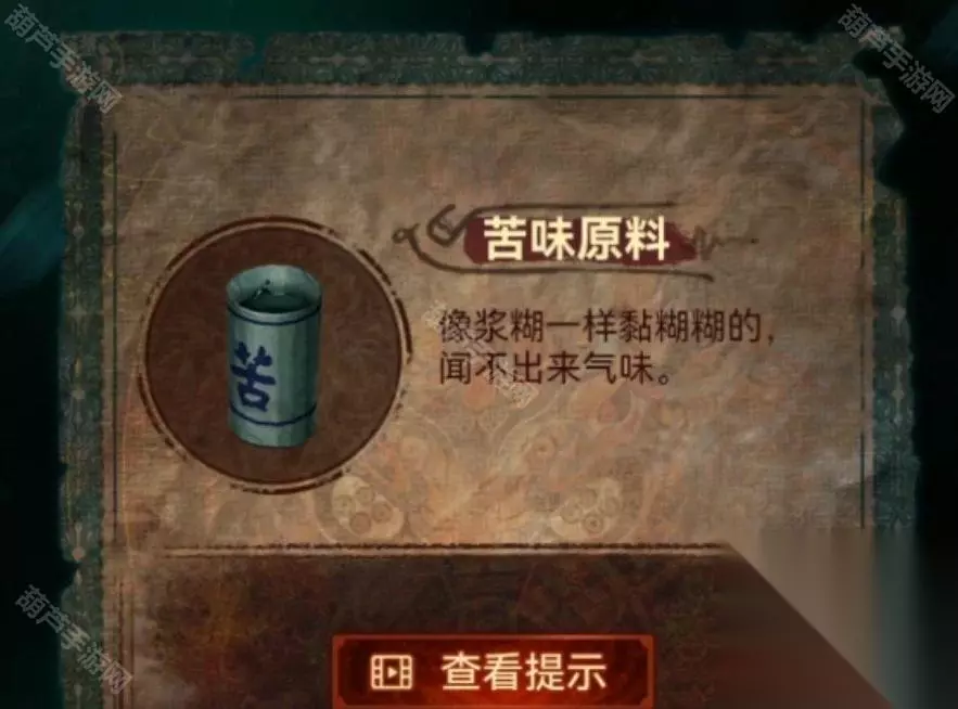 先确认一下,1是四牲脍,3是子孙饭,2和5是楮尘煳,还有个别忘记冥镪指的是冥镪糖,那么我们空缺的只有4了,所以顺序是四牲脍-楮尘煳-子孙饭-冥镪糖-楮尘煳,按照顺序点击一下上面的这几个果然拿到了一份“楮尘煳”,话说这不就是香灰泡水吗?