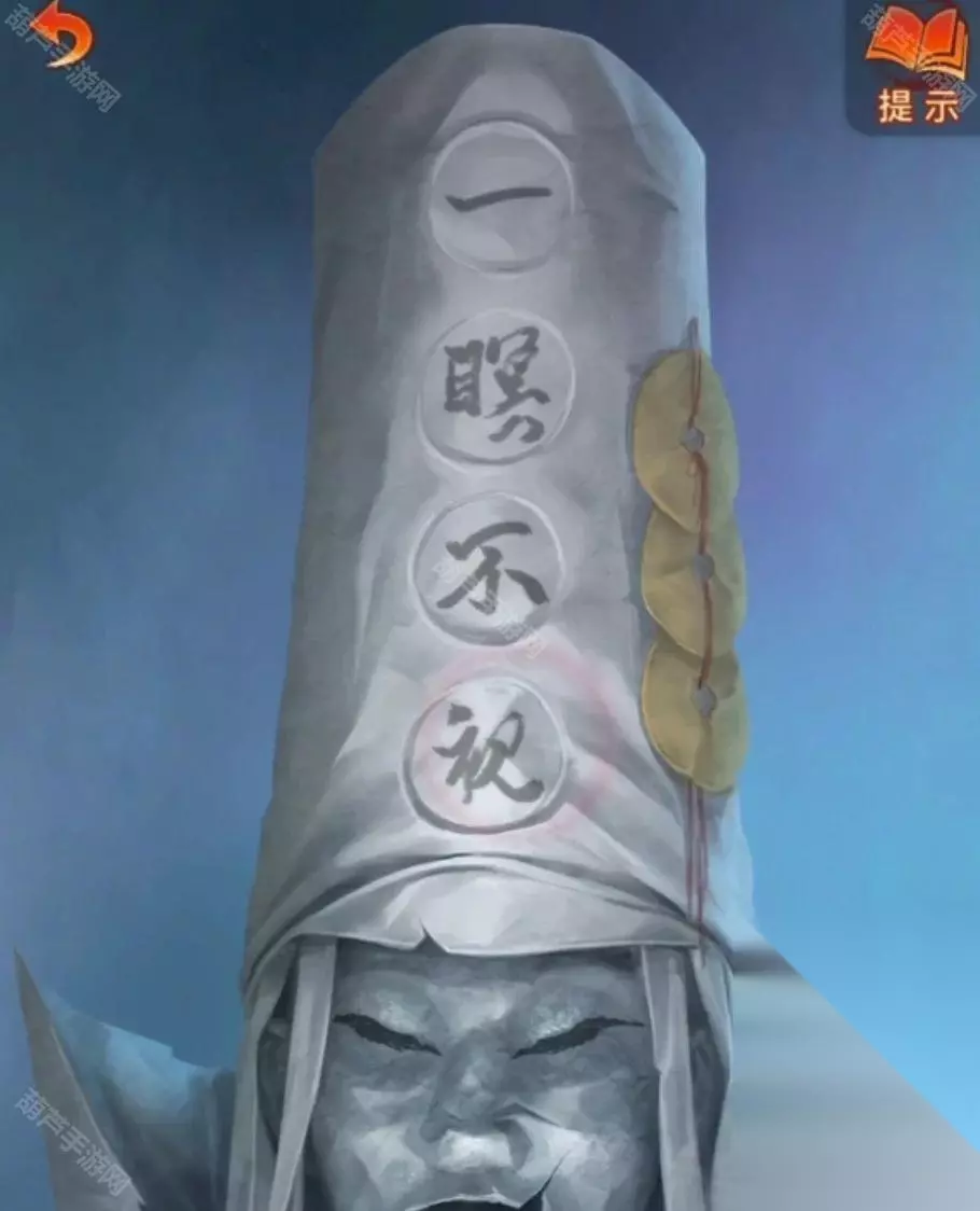 小高能后舞台上出现了白无常,但是白无常的帽子上好像少了什么东西,使用毛笔就可以开始写字了,这里没记住的话可以回到小剧场查看一下赛博灵台的照片,点第一个按钮就能调整为白无常了哦,白无常帽子上写的是一暝不视,其实前面调整白无常的时候也能根据这个照片来的。