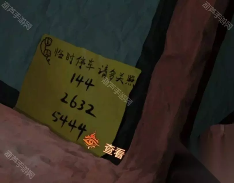 剧情过后查看一下咖啡店场景,基本没什么线索,左转到停车场场景,查看门卫后可以看到他手机提示无法送达,又一个顾客失去了他的快乐,查看过手机后看一下右边的门神,提示吊着几个牌子,而且是无法移动的,看来就是线索了,记下来这三个牌子的位置后右转。