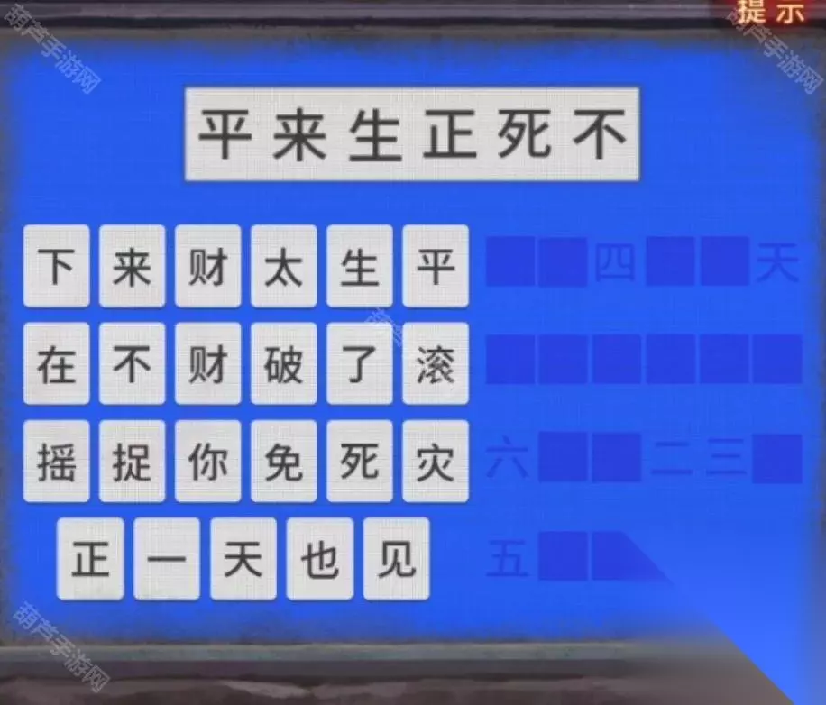 那么我们就能获得线索4=正,6=不,2=来,3=生,5=死,1=平,所以我们按照顺序排列一下就是平来生正死不,找一下这几个字输入后可以查看三生,这里今生会有剧情,不过这不影响我们掏出小卡片,将三生所有出现在框框中的文字都给记录下来。