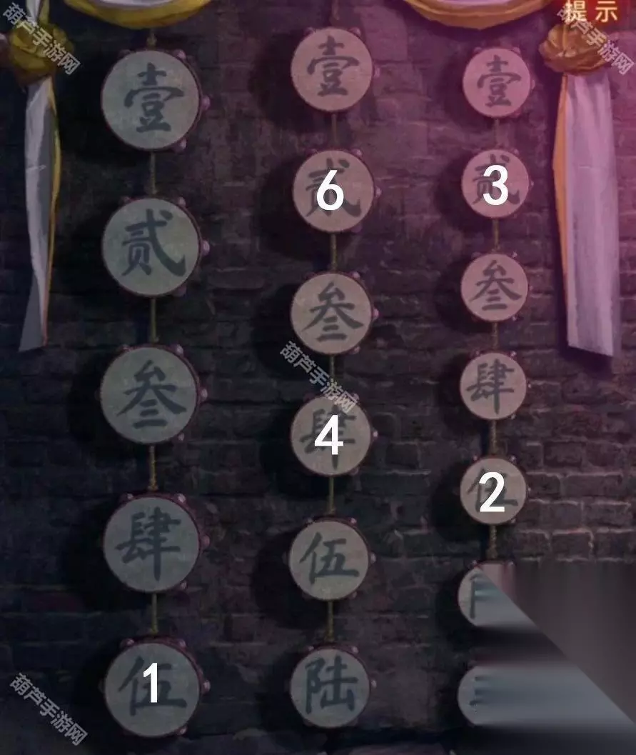 这个算是有点难度的谜题了,首先上面的图案很明显是算命左边的那个鼓,但是意思就很模煳了,第二句和第三句是提示,首硕次小,硕是大的意思,也就是先大再小,然后平升低升响,也就是平-上-下-上,我们现在手里的数字密码就是红光下的那个552472,先回到算命场景,对照左边的鼓查看一下数字。