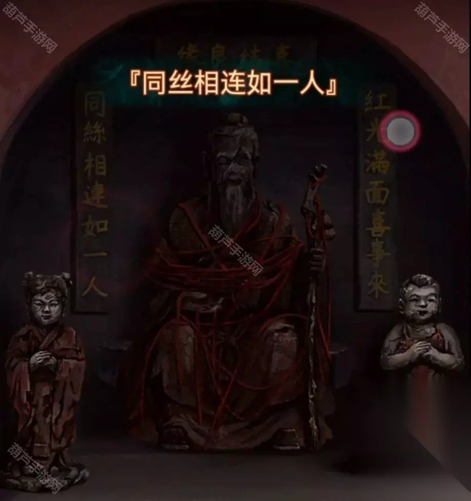 回到冰雪世界,将铁杯子交给八不郎获得女童子像,回到监控室查看左边的月老像,将两个童子像放在左右两边就能玩个小游戏,在蜘蛛头变大的时候点一下就行,主要是考手速难度不大,完成之后拿到一根红绳,不是说同丝相连如一人么,所以一个名额就能出去两个人了,玩的一手好消消乐。