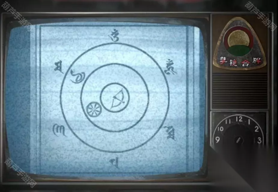 全部进对后就能离开这个空间回到沙漠了,再次进入佛像下面的监控室,查看一下商标红笔标注是>3^4,那么是不是可以理解为向右3格,向上4格呢,既然是向右向上,那么起始点肯定是从左下角了,从左下角的显示器向右3格向上4格后找到的是第一排的第3个,查看一下这个电视使用商标后果然出现图案。