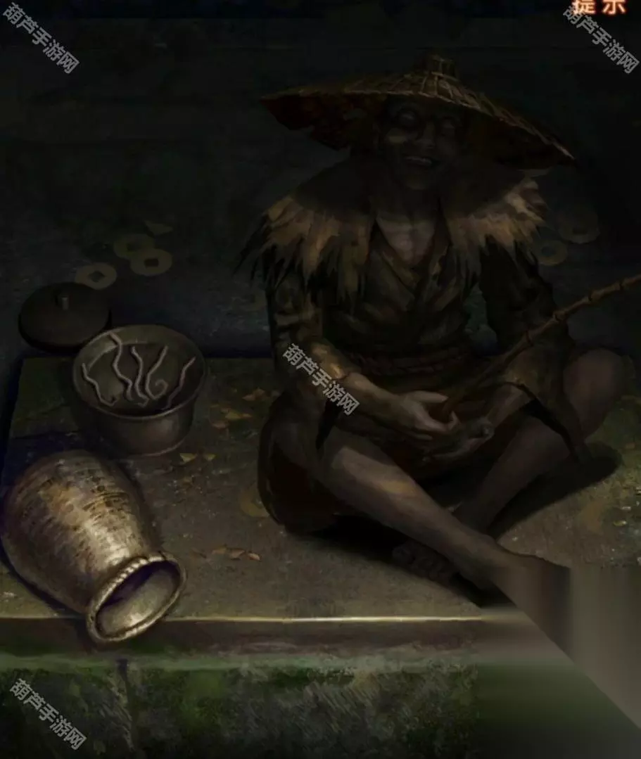 算了也不能和鬼计较,拿到后查看前面的队伍,虽然穿的喜庆但是他们可是抬棺材的,大概是管材里的等不及了竟然自己伸手出来讨要,注意看伸出来的袖子上的画是个饿死鬼,没看清的话点一下也是有提示的,所以把我们的纸灰泡水交给他,起码是特色小吃呢,他交给我们一枚古钱后就心满意足的走了。