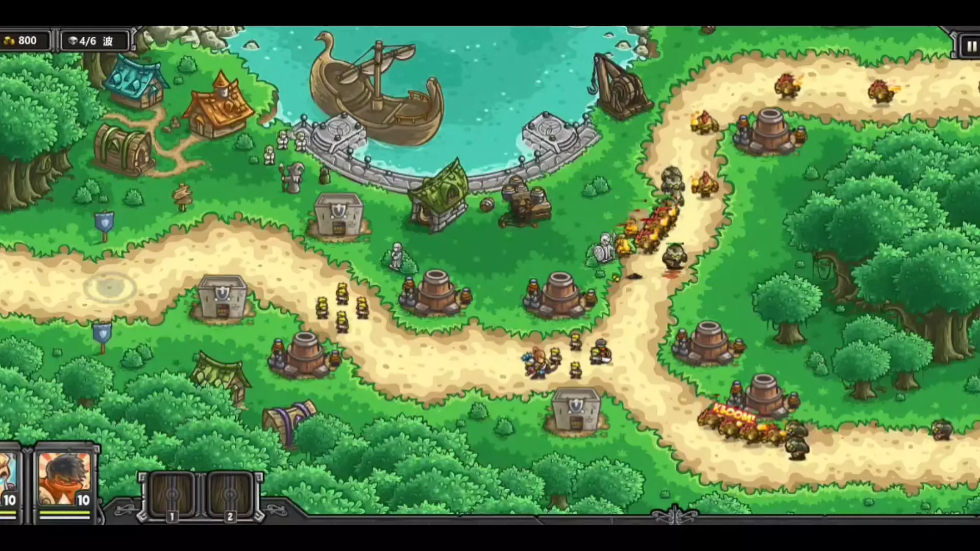 本内容为《王国保卫战dove版》的游戏演示,展示了四倍出怪模式下的玩法,玩家已获得英雄维斯帕,将在游戏中展现该英雄的双倍伤害效果,呈现塔防战斗过程。