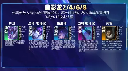 9、幽影龙 伤害使敌人缩小减少双抗40%,每次对被缩小敌人造成伤害提升3/6/9/15攻击法强。