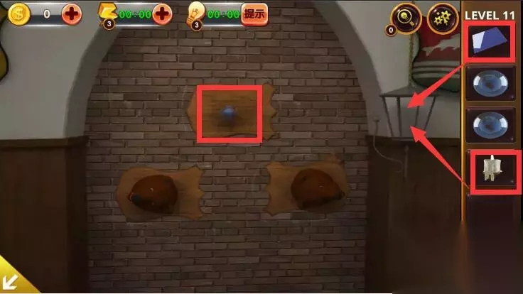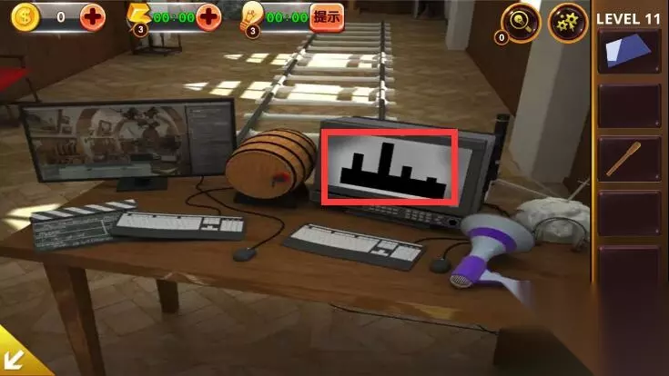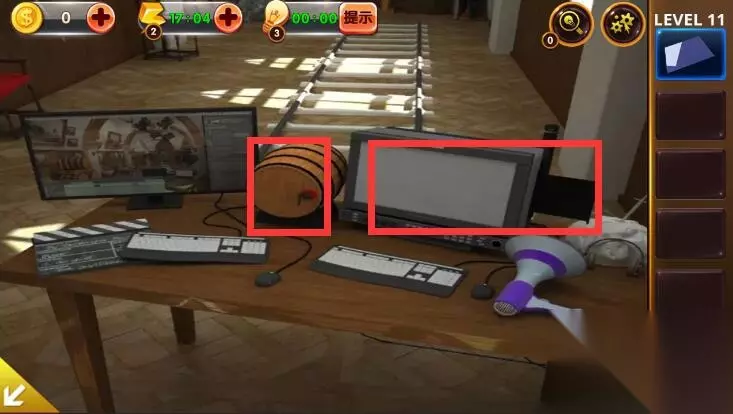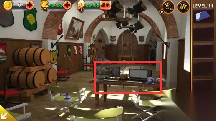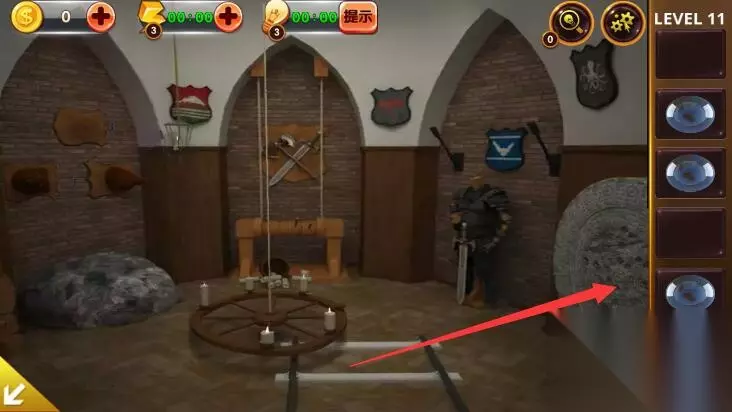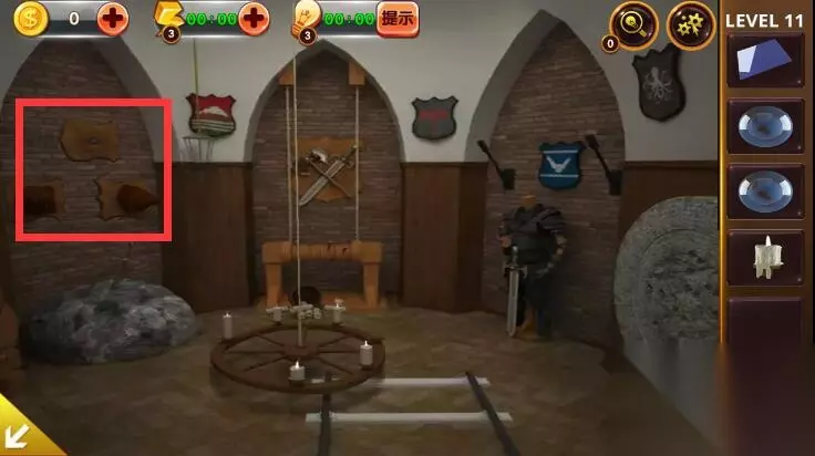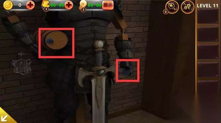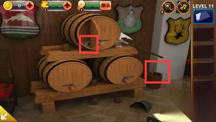 1、点击角落里的铠甲,获得卡片和木桶上的提示。