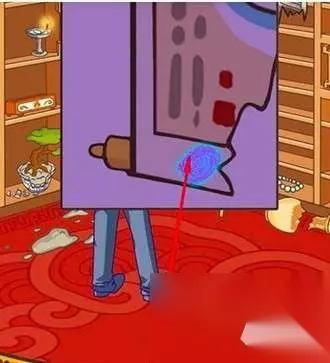 2、滑动画旁边的绳索,绳索掉落在地上。 3、拖动地上的宝剑到盆栽上,将挂住工具的树枝砍断,工具会掉在地上。 4、拖动紫外线灯到宝剑上。出现细节图,上面有指纹。 5、拖动紫外线灯到盆栽附近地面的土上。出现细节图,上面有脚印。 6、拖动紫外线灯到烛台上。出现细节图,上面有指纹。