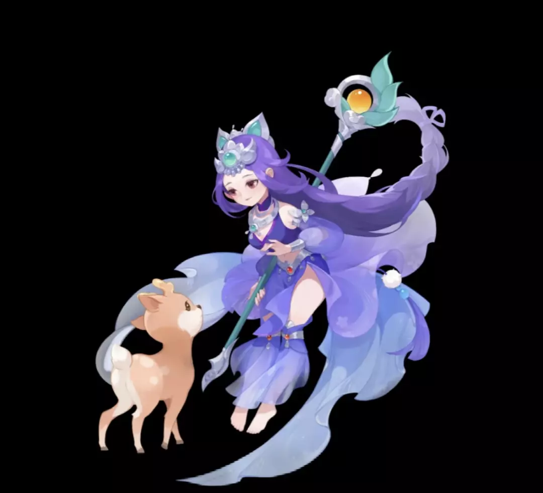巫蛮儿形象质朴单纯、灵动可人,生性善良,活泼可爱。她天生灵力高强,一头水蓝色的长发,常身着漂亮的水蓝色服饰,手持宝珠或法杖,在战斗中展现出非凡的实力。巫蛮儿的宠物是一只灵鹿——灵儿,经常陪伴在她身边,为她增添了几分温柔与可爱。