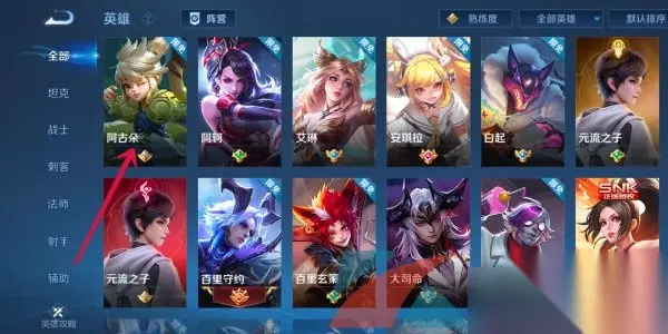 2、接着在英雄页面,随意点击一位英雄进入详情页。