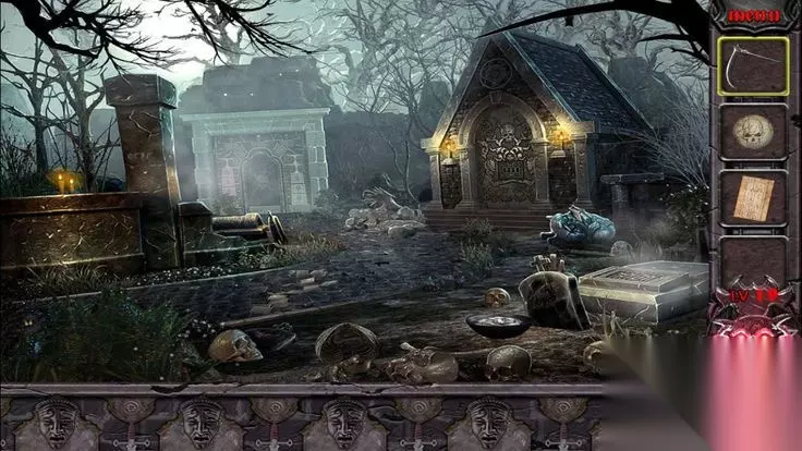接着移动到左边的房间内,你会发现一个钟罩着的台阶,台阶下有一个空位,你需要找到这个位置对应的物品。调查房间各处,你可以在右上角的画架边找到一个透明的挂钩,拿下来,然后回到空位的位置放上去,就能解锁台阶的机关。此时的你想必已经发现,台阶下面隐藏的是一个保险箱,你需要找到对应的密码才能解开。 回到走廊的右边,你会发现一个镶着金边的桌子。桌子下有一个滑槽,滑开之后可以发现一把钥匙。但是并不能直接得到,你需要找到一种工具来拿到它。你继续在走廊里搜索,左边的盆栽下有一支长的铁丝,拿回到桌子下,用铁丝可以轻松拿到钥匙。