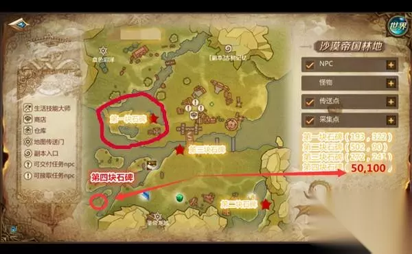完成历史石碑系列任务后可以获得一件十分强力的紫装护腕,但是很多小伙伴们还不知道历史石碑任务在哪接,今天小编就来手把手教大家如何触发历史石碑任务。 历史石碑任务在哪接 首先来到如图所示的第一块石碑处,坐标为(193.322)