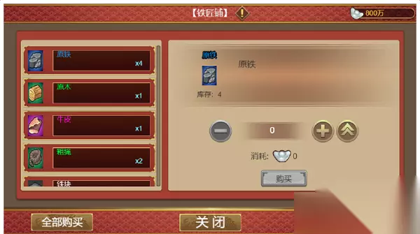 3.锻造所需的材料可以通过在庄师傅和林师傅商铺等处购买,图谱可以在云湖渡购买、锻造事件获得。在铁匠铺购买材料,庄师傅、林师傅等其他师傅随机出现。 4.点击锻造,消耗一个时辰。锻造有回合,回合和品质有关,比如品质一星的西瓜刀,一月份锻造,二月份就出结果。裴旻剑二星品质,一月份锻造,三月份出结果。 5.锻造结果有成功和失败,sl可以改变锻造的结果。结果是成功还是失败都可以对庄师傅等师傅进行赏赐 6.铁匠铺:每次来铁匠铺,庄师傅可以购买的材料不同,可以刷自己需要的材料;其他师傅可购买材料的数量和品种一样,不可刷新。铁匠铺可以销售的材料和全国平均商业、当前回合数、皇帝属性目前没看出有关联,在铁匠铺购买商品不消耗时辰,点击锻造消耗一个时辰,每月最多锻造四次,不同宝物可以同时锻造,每个月开启该店铺,没有次数限制。每次锻造都消耗图谱。锻造材料在满足最低要求的条件下,每提升一个材料的一个等级锻造成功率+5%。,满足锻造最低要求,锻造成功率为50%,材料等级过低无法锻造。