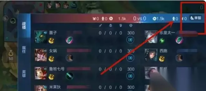 3、进入游戏后,如有人发布不良语音可以打开战绩面板,选择举报按钮进行举报;