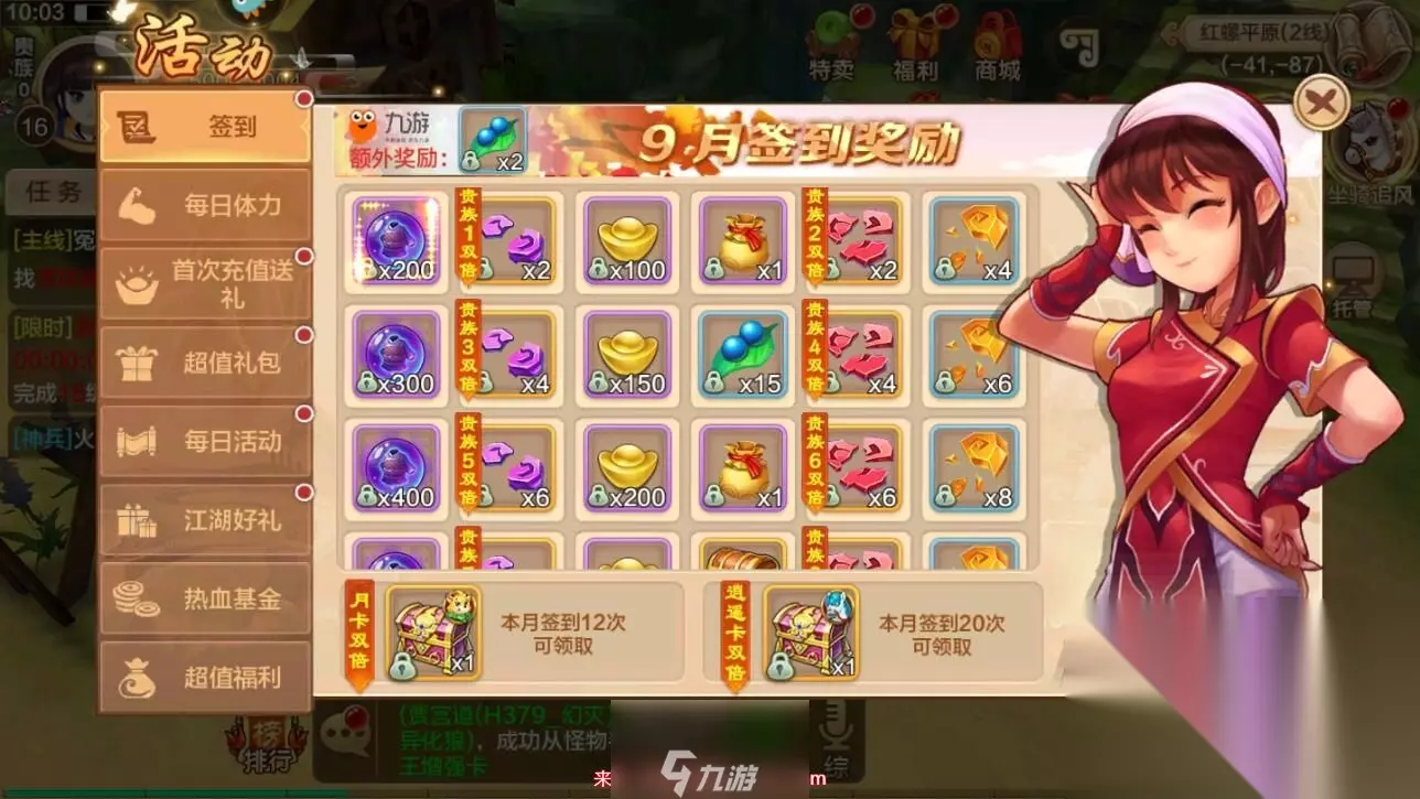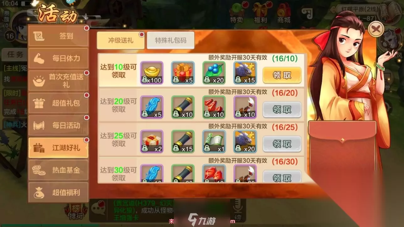 2、进入福利界面后,选择左侧的“江湖好礼”菜单。