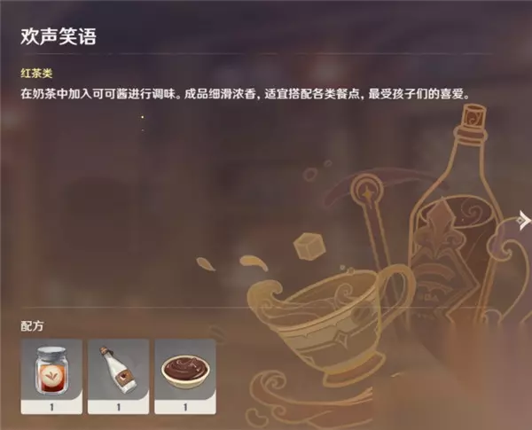 焦糖松果和隐藏饮品配方待解锁 红茶类 学士的午后配方:两份红茶 一份牛奶