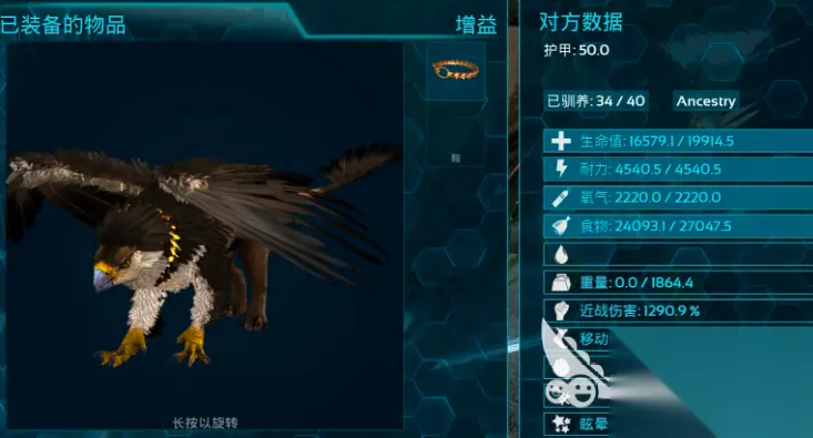 狮鹫最喜爱的饲料是卓越饲料,可以明显加快驯服的速度。卓越饲料的制作材料有大型龙蛋、柠檬、熟肉干、水袋、纤维和紫色浆果。如果一时找不到大龙蛋,用二三十块优质生肉来代替也可以。喂食时把食物放在狮鹫背包的顶部,一直观察驯服进度条的变化。进度条填满之后,它就成了你的朋友。从此你的探索就不再受地形的限制了,高空视角、快速运输能力使你在方舟世界中游刃有余。
