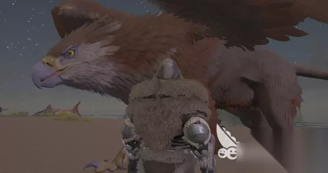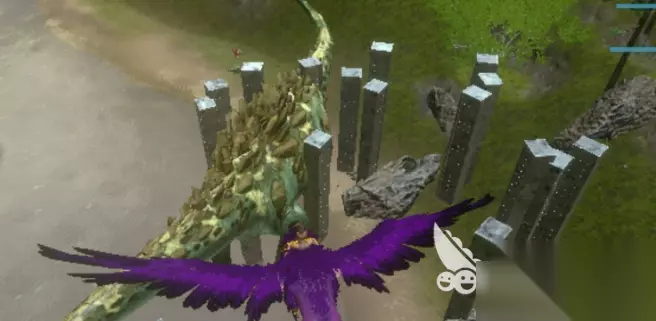 狮鹫的栖息地在高耸的山脉、险峻的悬崖上,焦土地图火山附近的峭壁、中心岛死亡岛的崎岖山脉、仙境地图的冰雪世界。接近它们的时候,警觉性很高的狮鹫随时会发起攻击,所以隐蔽是首要任务。玩家可以利用岩石或者树木掩护身体,也可以降低飞行高度缓慢接近。等狮鹫降落的时候就是行动的最佳时间,用复合弩射麻醉箭将其打昏,注意屏幕右侧眩晕条的变化。击晕之后要立即补充麻醉药,特别是高等级的狮鹫,眩晕恢复得很快,需要多组麻醉药来保证稳定。