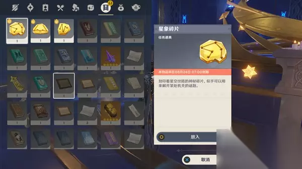 2.回到之前星星引导的位置的放置器,上方放入图示碎片
