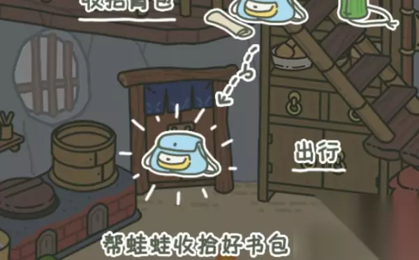 3、在最开始的时候是需要我们自己帮青蛙收拾书包,然后青蛙就会自己出门去旅行了。