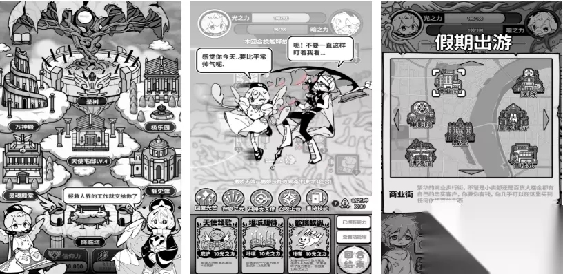 这是款基于圣经神话故事开发的天使主题游戏,黑白背景张弛有度且拥有角色扮演的性质,大家会扮演造型可爱的小天使进入天堂各个部门中互动,资料部、救赎部等超多特殊的部门等待大家解锁,以天使身份庇佑人的命运也颇有成就感,你也可尝试寻找那些信奉天界的信徒汲取特殊的力量,总的来说这款小清新天使游戏还是挺好玩的。 高速下载 普通下载 优先233乐园APP下载 上述这些包含着天使元素的神奇手游作品值得一玩,大家现在清楚流行的守护天使游戏下载哪个好了吧,游戏世界的守护天使造型各异也存在着不同能力,在众多天使的帮助下你不会遇到太过困难的任务,相信天使存在的朋友一起下载这些佳作邂逅守护天使吧。