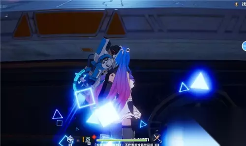 接着我们换出源能手炮打出柱子,站立在上面。