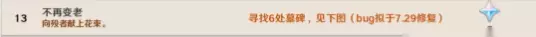 以上就是本次为各位旅行者分享的,不再变老成就完成方法了。 游戏介绍: 《原神》是由上海米哈游制作发行的一款开放世界冒险游戏。游戏发生在一个被称作“提瓦特”的幻想世界,在这里,被神选中的人将被授予“神之眼”,导引元素之力。玩家将扮演一位名为“旅行者”的神秘角色,在自由的旅行中邂逅性格各异、能力独特的同伴们,和他们一起击败强敌,找回失散的亲人——同时,逐步发掘“原神”的真相。