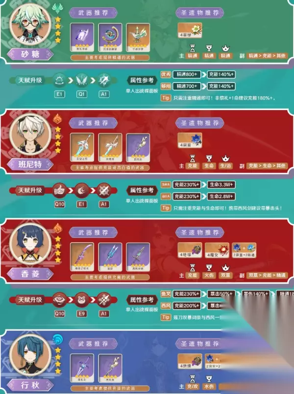 原神砂糖培养攻略2024 1、砂糖是值得培养的一个角色,可以给队伍其他角色提供精通,泛用性也比较高,配队很灵活,大部分都是和万叶在一个队伍中。 2、砂糖的普通攻击至多四段的风灵攻击会造成一定的风元素伤害,重击则是消耗一定的体力,造成范围性伤害。 3、砂糖的武器可以选择试作金珀和昭心,我们需要考虑能否增强砂糖的角色特性,武器的属性和技能就是关键。