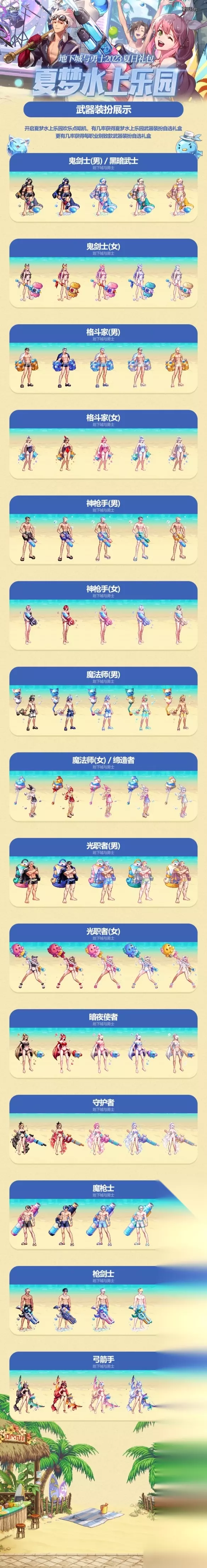地下城与勇士09年-2023历年夏日套时装外观怎么样?dnf中的夏日套是时装是这套礼包的最大特色,每年的夏日套时装都是以清凉为主题的,并且可以体现出角色的身材,那么历史的夏日套时装外观都是什么样子呢?下面就让233乐园小编我来给大家展示一下吧。 dnf历年夏日时装外观大全 2009年夏日套