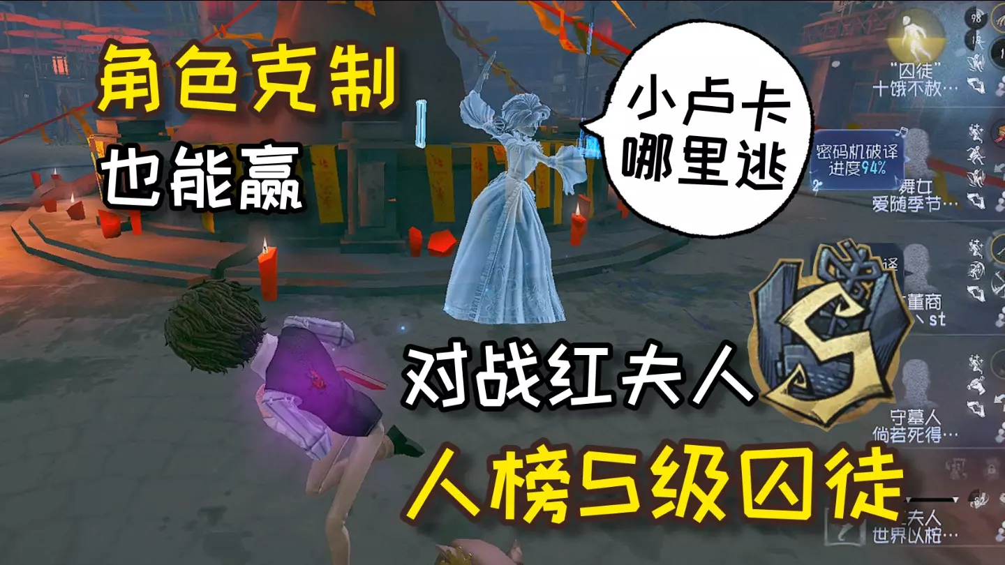 理论上囚徒很难牵制榜上高熟练度的红夫人,所以视频里也讲到了要结合很多因素才有可能勉强苟活,所以下次还有人问红夫人怎么溜的给他看这期视频。没学会溜红夫人没事,至少…
