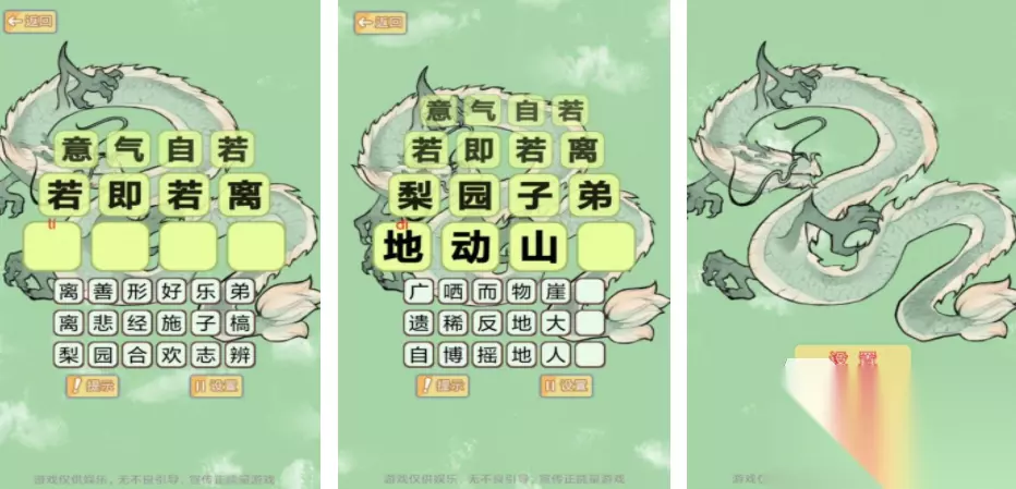 贪吃蛇是大家都比较熟悉的一个题材,在智勇闯关赛小游戏里面,玩家需要操控贪吃蛇,开启闯关挑战,游戏里会设置很多不同的场景,需要通过点按按键的方式,及时控制贪吃蛇改变方向,这样才能躲避游戏里的各种障碍,让贪吃蛇顺利达到终点,游戏里会有大量的关卡,玩家每一次挑战,都能感受到不同的趣味性。 高速下载 普通下载 优先233乐园APP下载 4、《休闲成语益智》
