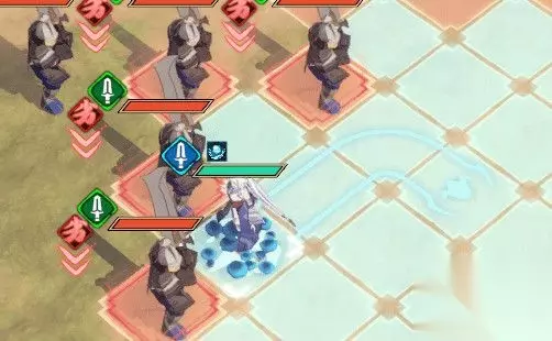 击杀左边的士兵 首先移动到这里,攻击左边的士兵,击杀后使用冰华飞剑可以穿越这几个小兵哦
