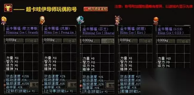 在DNF中,称号的重要性不言而喻。勇士们选购礼包,很大一部分原因是就是看中了称号的属性。每年一次的贺岁礼包,更是玩家们关注的焦点。今天就带大家回顾一番2009—2012年的那些贺岁礼包称号吧! 2009年贺岁礼包——金牛赐福