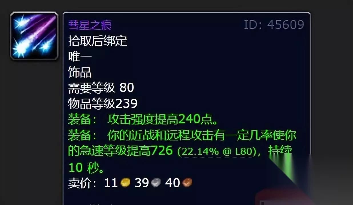 亡者的统治现在最高等级只有245了,它不加暴击,特效触发条件苛刻,在同等装等条件下绝对不是“天堂之焰”的对手。 物理DPS饰品-彗星之痕