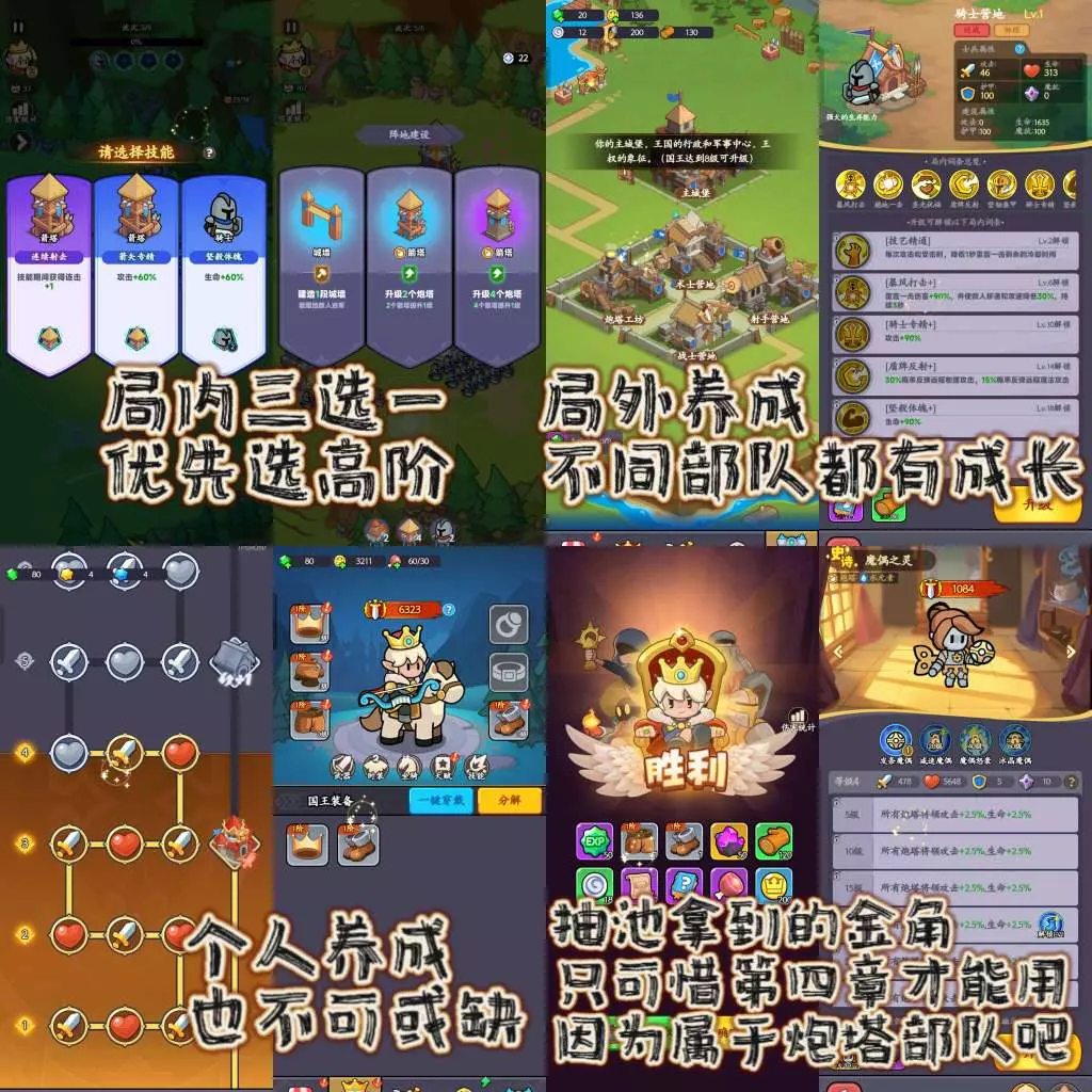 最重要的一点是真的没啥战略性,游戏彻底打造成了一个轻量化、无脑即可游玩、一切安排妥当,只需要场外养成面对敌军波次的放置养成类游戏,只是不同于经典放置养成的回合制、而是改成有一些互动和轻安排的演出——说是轻安排,也是因为玩家能操控个主角、极为有限的提供着前期输出。