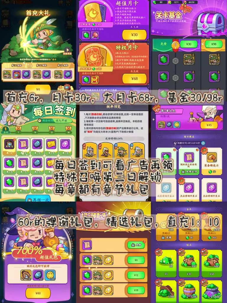 但从设计来说的话,其实就是照搬如今市面上成熟的商业体系:首充有、基金有、大小月卡也有,直充有、抽池有、场外养成也有。