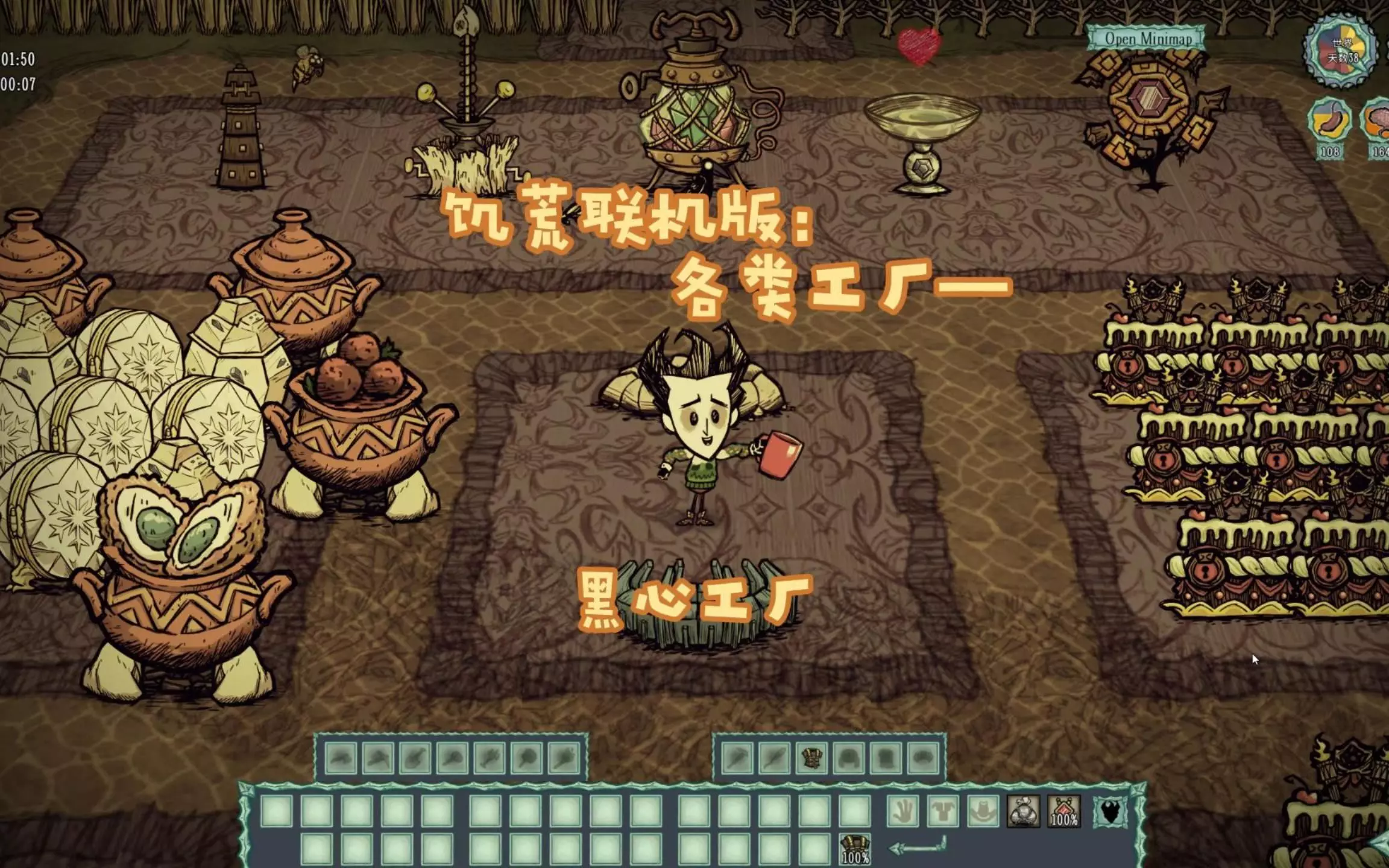 这是《饥荒联机版》女工薇诺娜的实况内容,展示冬季末尾速杀克劳斯等BOSS、制作黑心工厂获取无限能源的玩法,还推荐了可搜索饥荒中英wiki的藏经阁网址。