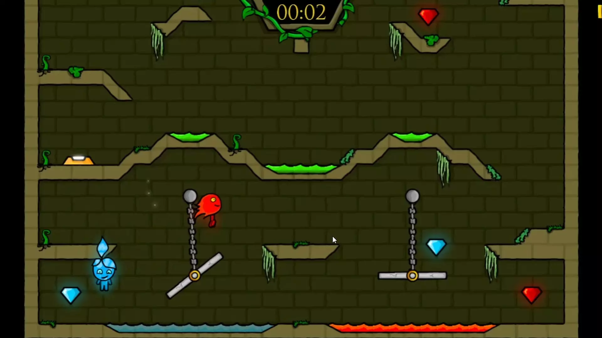 这是一则怀旧游戏内容,展示了单人操作《森林冰火人5元素》水之神庙第六关的速通过程,最终获得了A评分,呈现了关卡内的操作流程与场景。