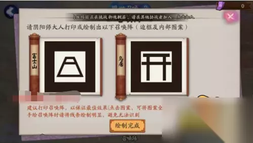 8.现世召唤需要玩家拥有现世符咒才能成功使用召唤阵,目前阴阳师游戏只能通过完成所有的每日任务才能获得现世符咒,所以此项活动还是很消耗玩家的大量精力的。 Q1:现世召唤召唤阵怎么画? 1、先来2张召唤阵的图,可以直接扫描电脑这张图或者图片下载、打印。当然手动绘制类似的图片效果更佳。 识别成功后会在手机上看到召唤阵的图案,把现世召唤符拖上去即可。