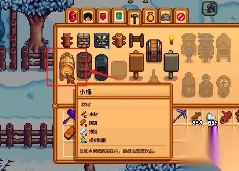 星露谷物语酿酒桶是需要先通过解锁地窖获取配方,自家的农业等级到达八级之后拥有足够的材料才可以制作的,材料是需要木材、铜锭、铁锭和橡树树脂,具体的数量和制作方法都带来了,一起看下吧。 星露谷物语酿酒桶怎么做
