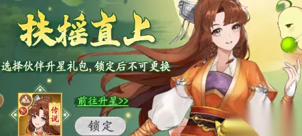 购买建议: 1.建议可以小氪购买【扶摇直上】的第一档(达到6星一定要加上第二档),其实就相当于买灵玉送【神界令牌】,性价比还是很高的; 2.已经达到了7星的籼米可以解锁【扶摇直上】第三档,10个本体碎片加上30抽的机会,将助力你冲击更高星级! 3.如果籼米已经将伙伴冲到了9星,那么【扶摇直上】是不容错过的,因为达到这个档位还能多解锁一个本体,花328买【扶摇直上】就能达到一个648【限购礼包】的效果,性价比拉满了!