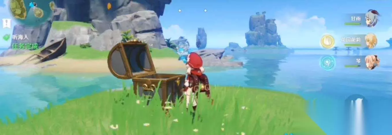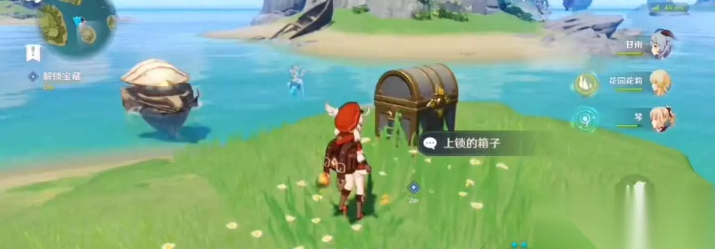上锁的箱子密码 其实这个锁住的宝箱密码就是【5214】,需要注意一下的是,小伙伴们需要找到下图所示的红圈里的海螺才可以触发任务,找到双双岛锚点,海螺就位于锚点下方山洞,之后就可以开启支线任务。