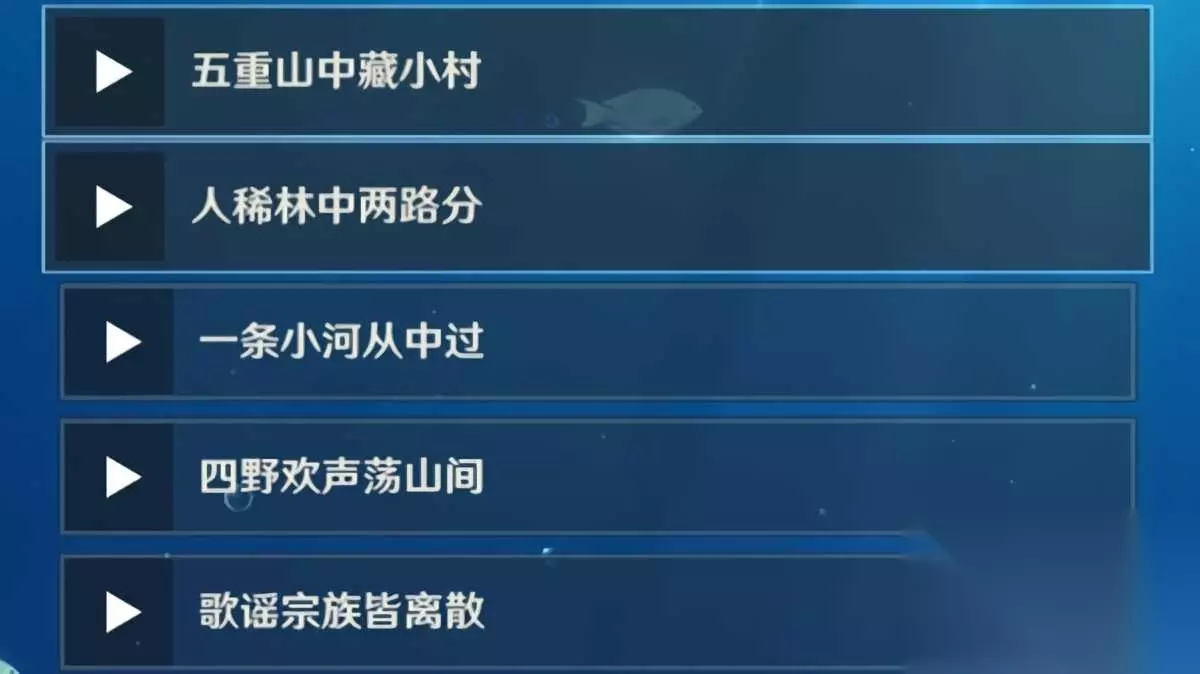 而这个上锁的箱子密码就是在收集海螺过程中得到的,小伙伴们在收集海螺时,可以获得5句离乡歌谣的信息线索,而这5句离乡歌谣具体如下: 第一句的“五重山中藏小村”,得到了数字5; 第二句的“人稀林中两路分”,得到了数字2; 第三句的“一条小河从中过”,得到了数字1; 第四句的“四野欢声荡山间”,得到了数字4;