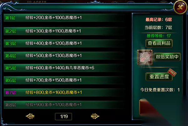 扫塔关卡,难度逐步提升,完成可获得经验、金钱、技能点、随机获得宝石。