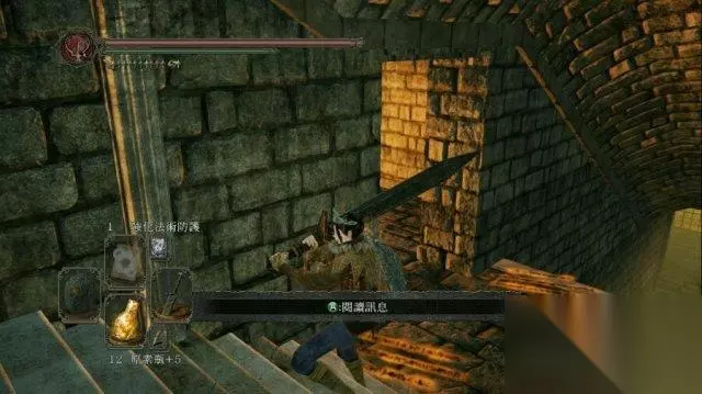 dlc1:该层楼梯往下有两个龙血骑士,别下去,这附近墙壁有个隐藏篝火