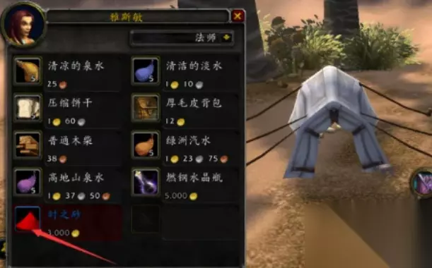 时之沙获取方法介绍: 1、找奥丹姆的西北角的旅店老板购买。 2、首先需要到奥丹姆,可以从暴风城的传送点传送到奥丹姆或者找法师朋友开一个到奥丹姆的传送门即可。 3、到奥丹姆之后,去西北角的维尔萨尔绿洲中,找"雅斯敏旅店老板",坐标是(26.6,7.2)。 4、时之沙的价格是3000G一个。