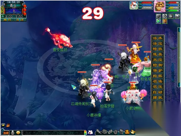 【兽变妖狐战斗】 兽变妖狐:开场会变身直接鹰击,速度较快 战斗难度:较高 战斗回合:4回合 注意事项:怪开场变身,防御低血少的玩家可防御或者拿召唤兽保护下自己