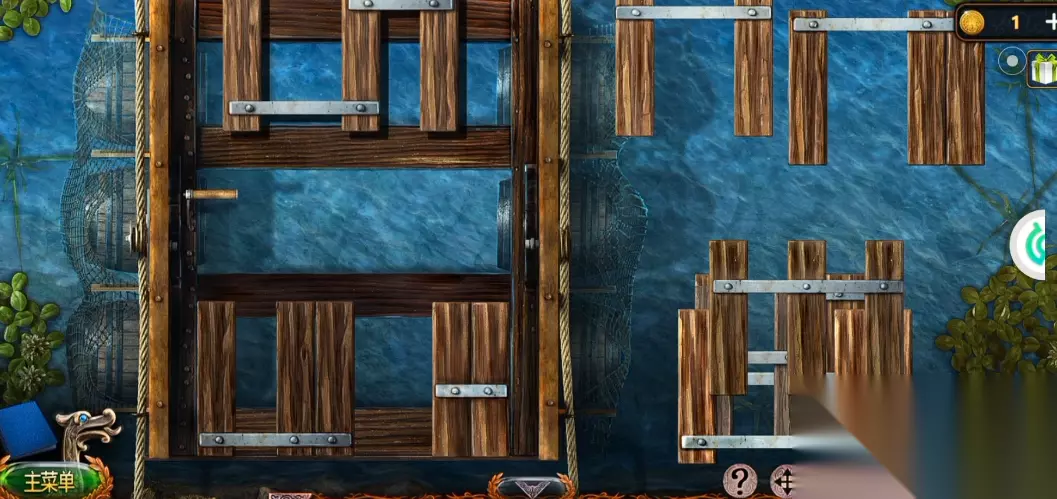 剩余三个木板块用于第二栏拼接:将三个点数且中间空三个木板的三个木板连接块放到第二栏最右边;将中间空两个木板且有四个点数的三个木板相连的木板块放在第二栏中间;最后将中间空两个木板块的H形状的两个木板相连的木板块放在第二栏最左边。完成这些步骤后,整个桥梁将形成封闭形状,玩家即可过河湾继续剧情。