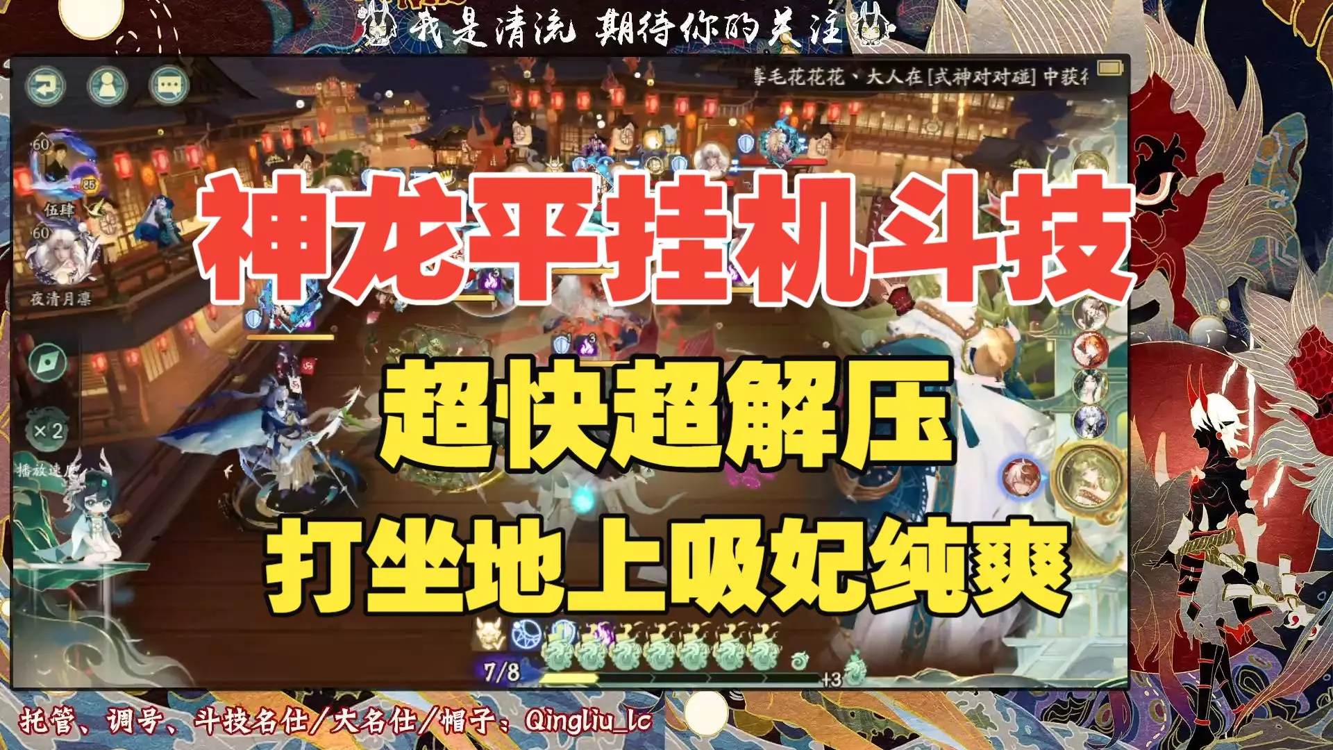 相关游戏:阴阳师 活动:诡夜百戏-夜退百祟 素材:颜叙Cyone丶 账号:靓妆惜素颜 ———————— SP吸队伍:|TA|16a3f6dcaf2be7fe8ef1b1b41c4f35b2 SP麓队伍:|TA|f09a119b1b12fa73a0e5b837dd0fb8c3 在伴生活动数日后,会开放【夜退百祟】的长线挑战 特殊机制是要友军吸血30万触发助战SP吸血姬的强力协战肘击(越打越痛) 这边推荐帝蝎献祭打法,用SP吸/SP麓丸都可以挂机,打满累计15亿就可以溜了~ ———————— BGM:Xenogenesis